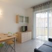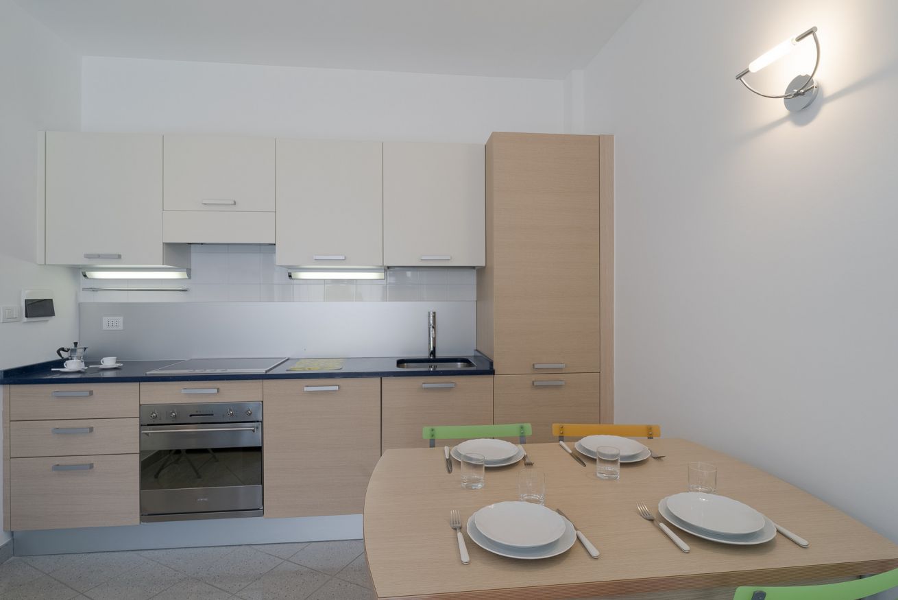 Dispone di due camere da letto e di un soggiorno con divano letto singolo e cucina attrezzata con tutto il necessario per cucinare, tavolo da pranzo e lavastoviglie.