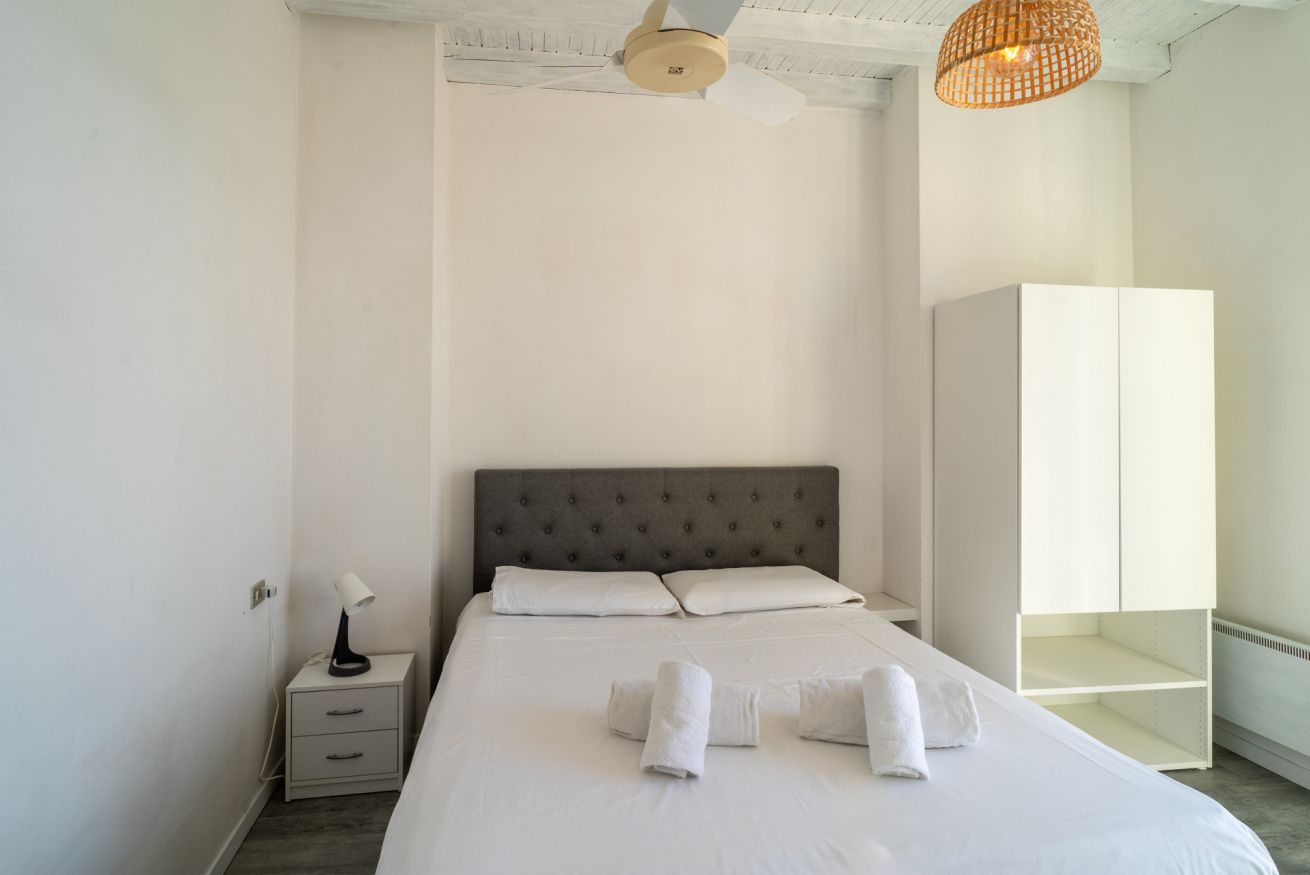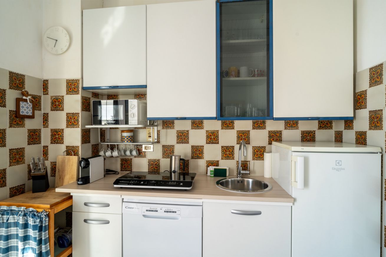 L’alloggio è composto da un luminoso soggiorno con cucina attrezzata, un divano che si trasforma in un comodo letto matrimoniale, una camera da letto matrimoniale e un bagno con vasca, che funge anche da doccia.