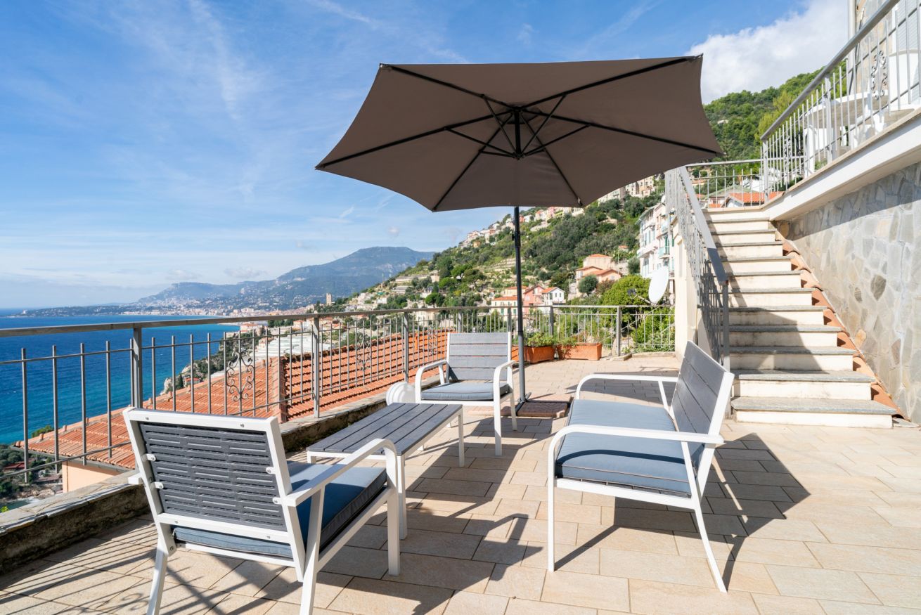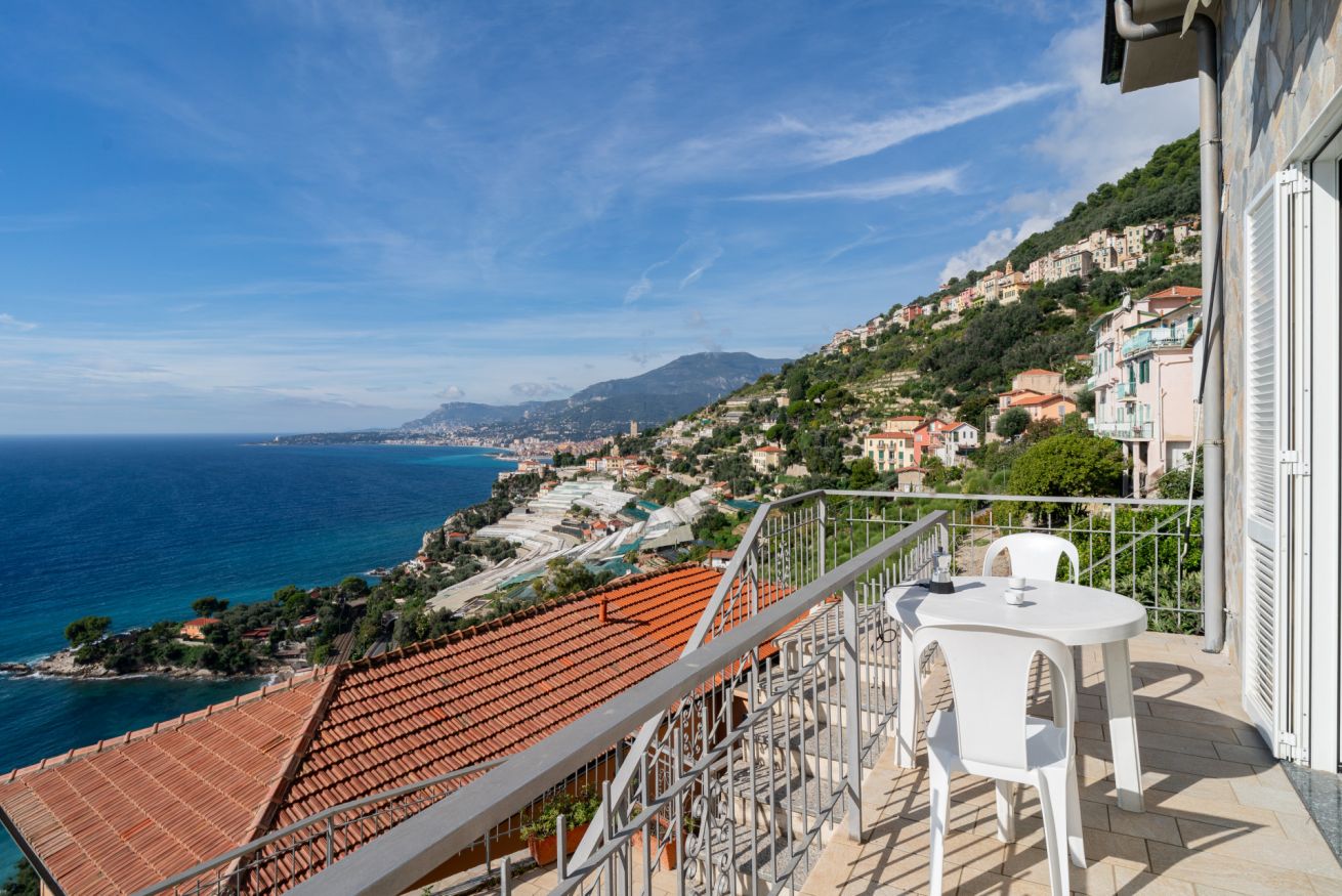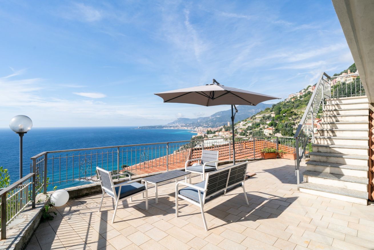 Situato a Grimaldi, al confine tra Italia e Francia, questo appartamento vanta una posizione unica direttamente sul mare e una vista mozzafiato sulla Costa Azzurra.