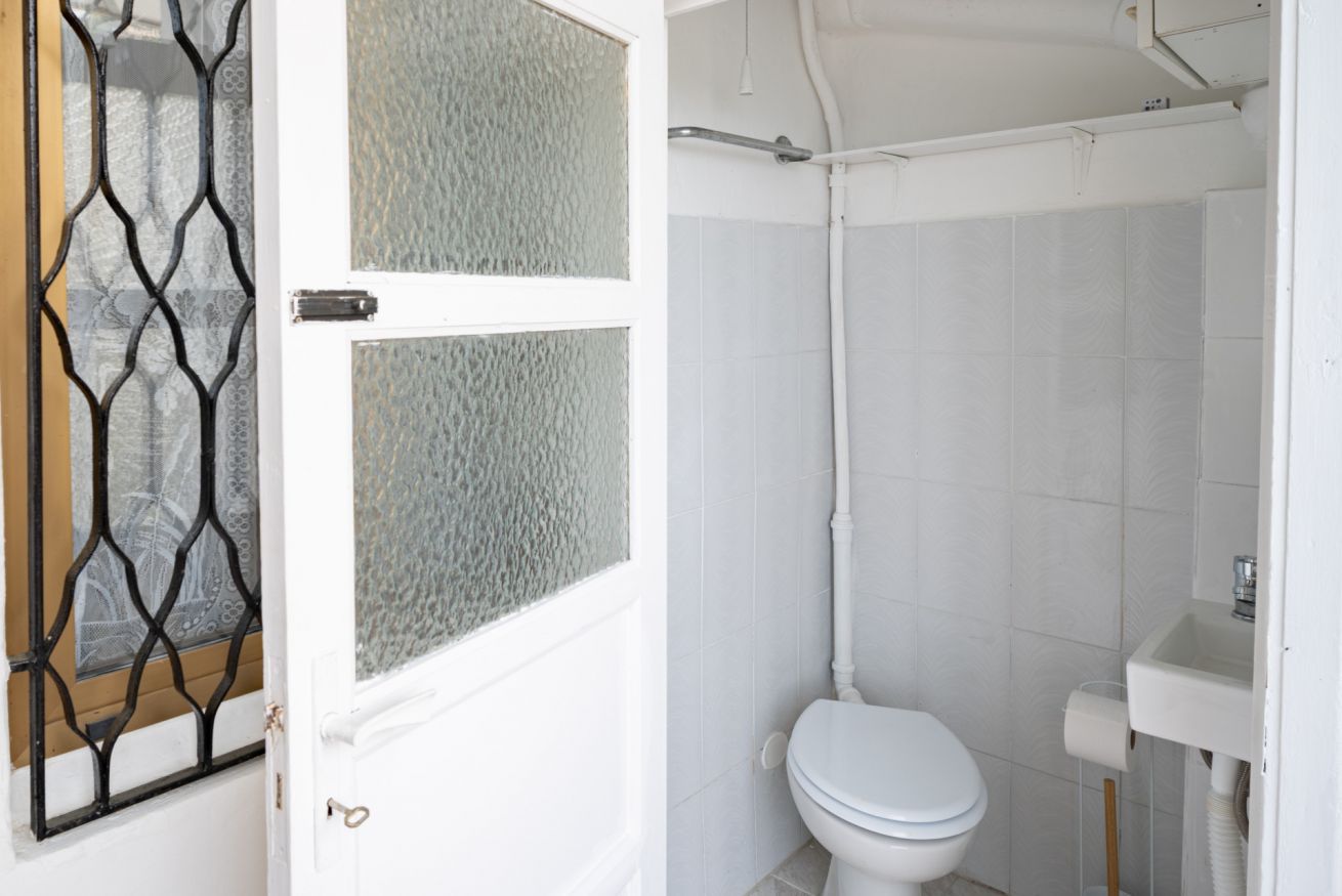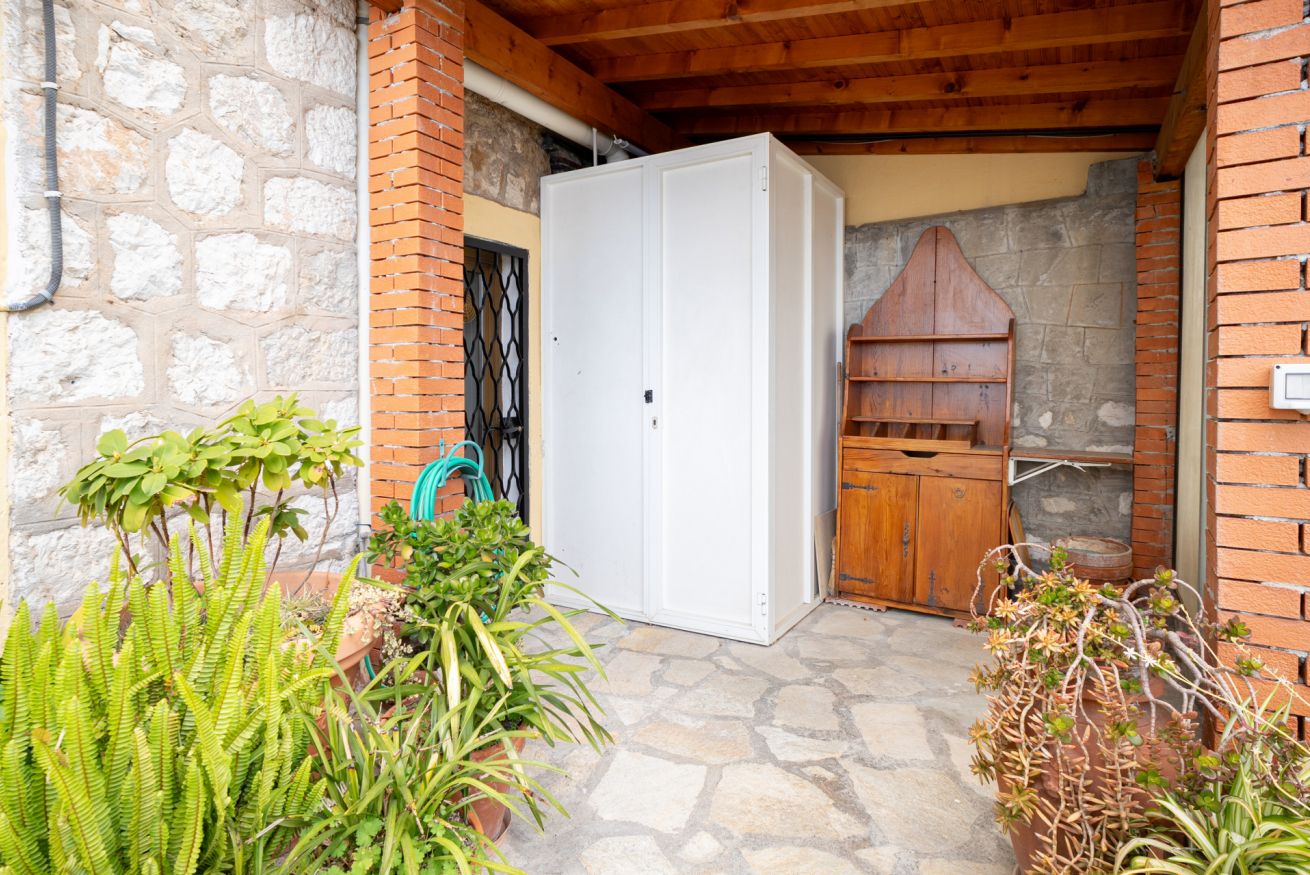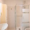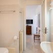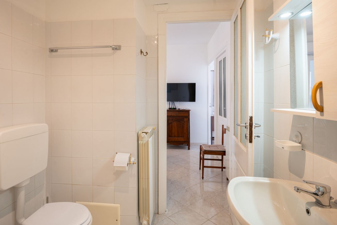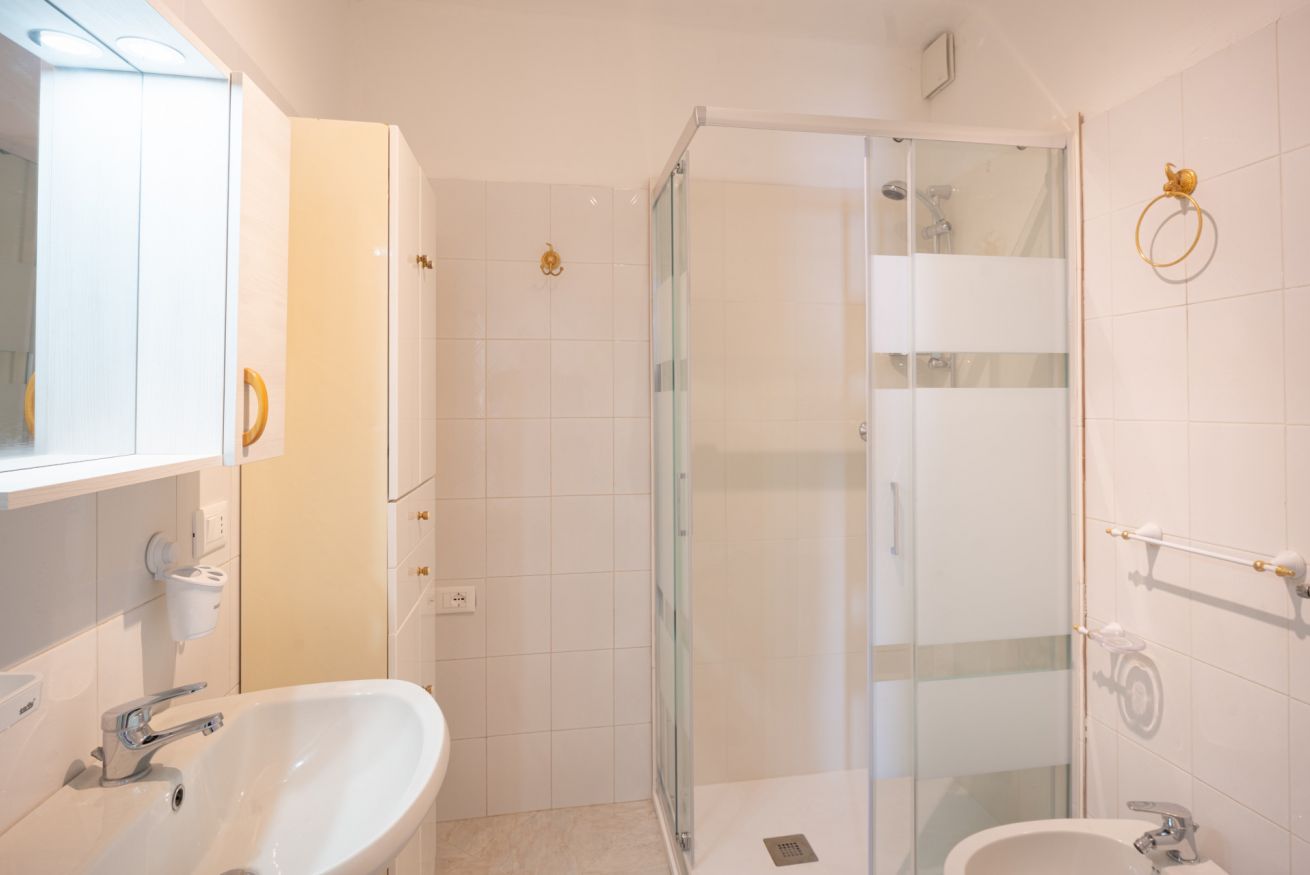 L’appartamento dispone di un bagno completo con doccia e di un bagno di servizio esterno, pratico e funzionale, collegato alla zona terrazzo.