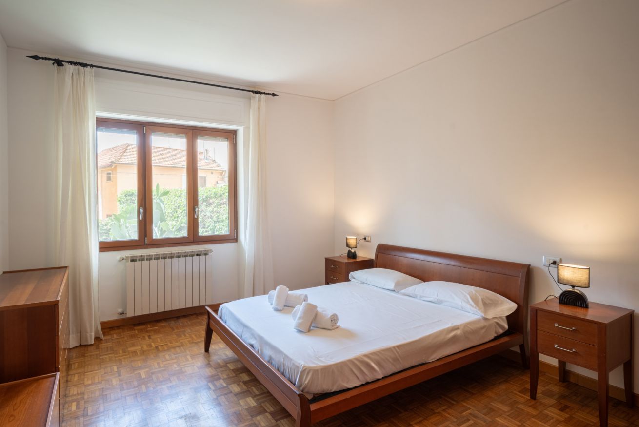 L’alloggio offre una camera matrimoniale molto ampia, luminosa e dotata anche di un lettino per bambini.