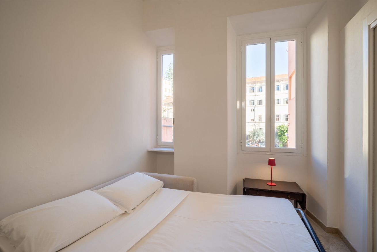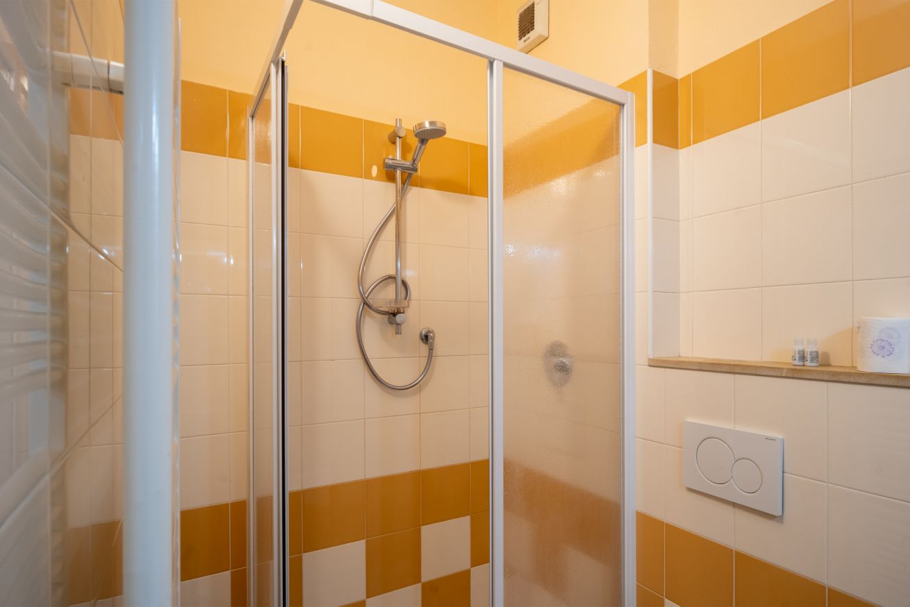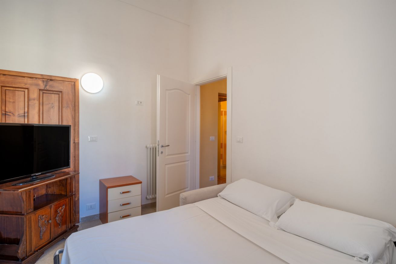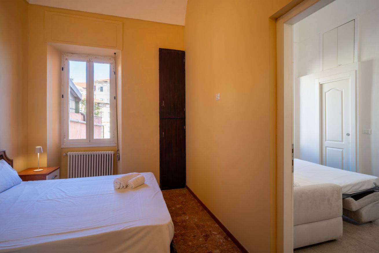 L’appartamento dispone di una camera da letto matrimoniale e di un salotto privato con divano convertibile in letto matrimoniale, permettendo così di ospitare fino a 5 persone. Il bagno è completo di una comoda doccia, garantendo praticità e comfort durante il soggiorno.
