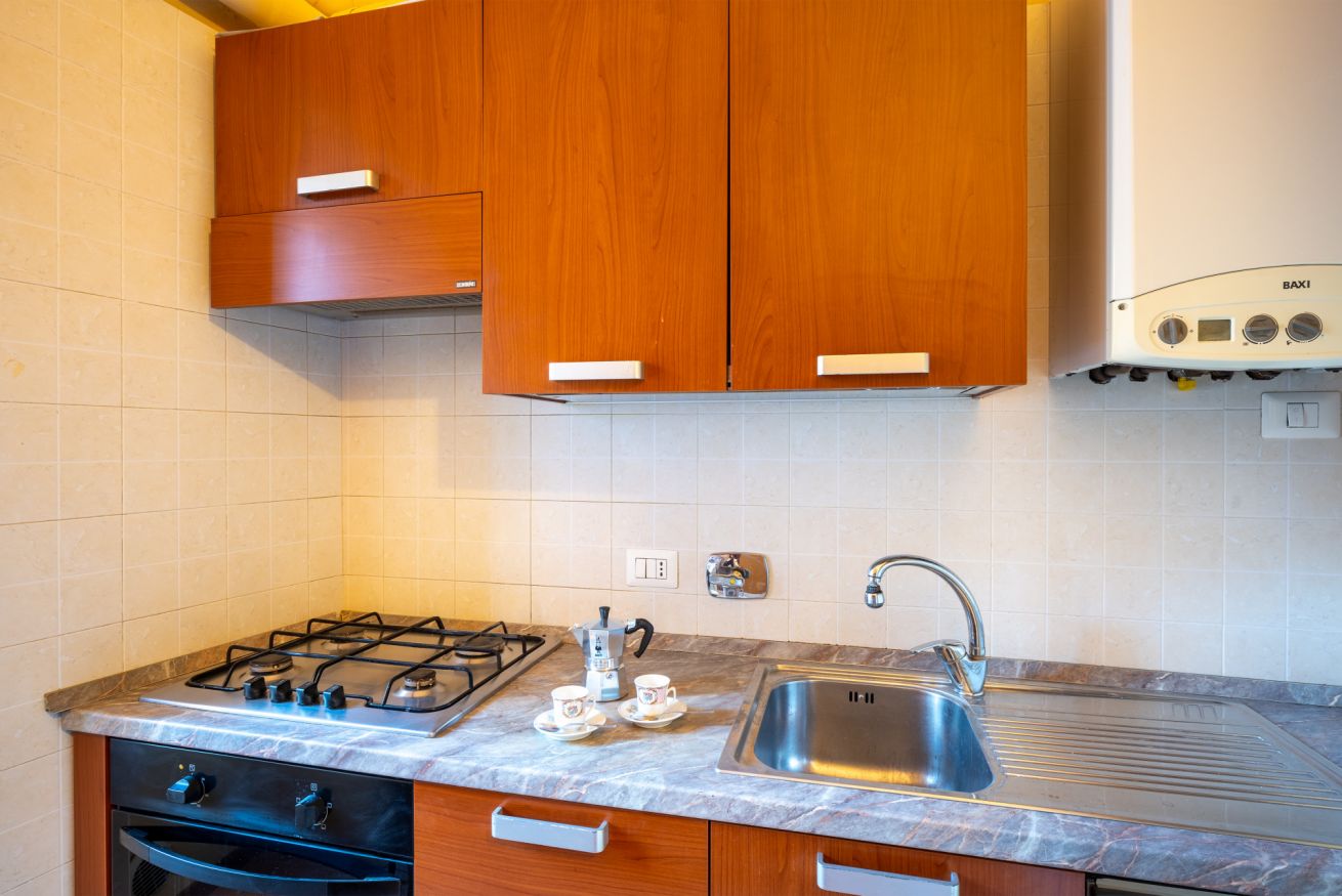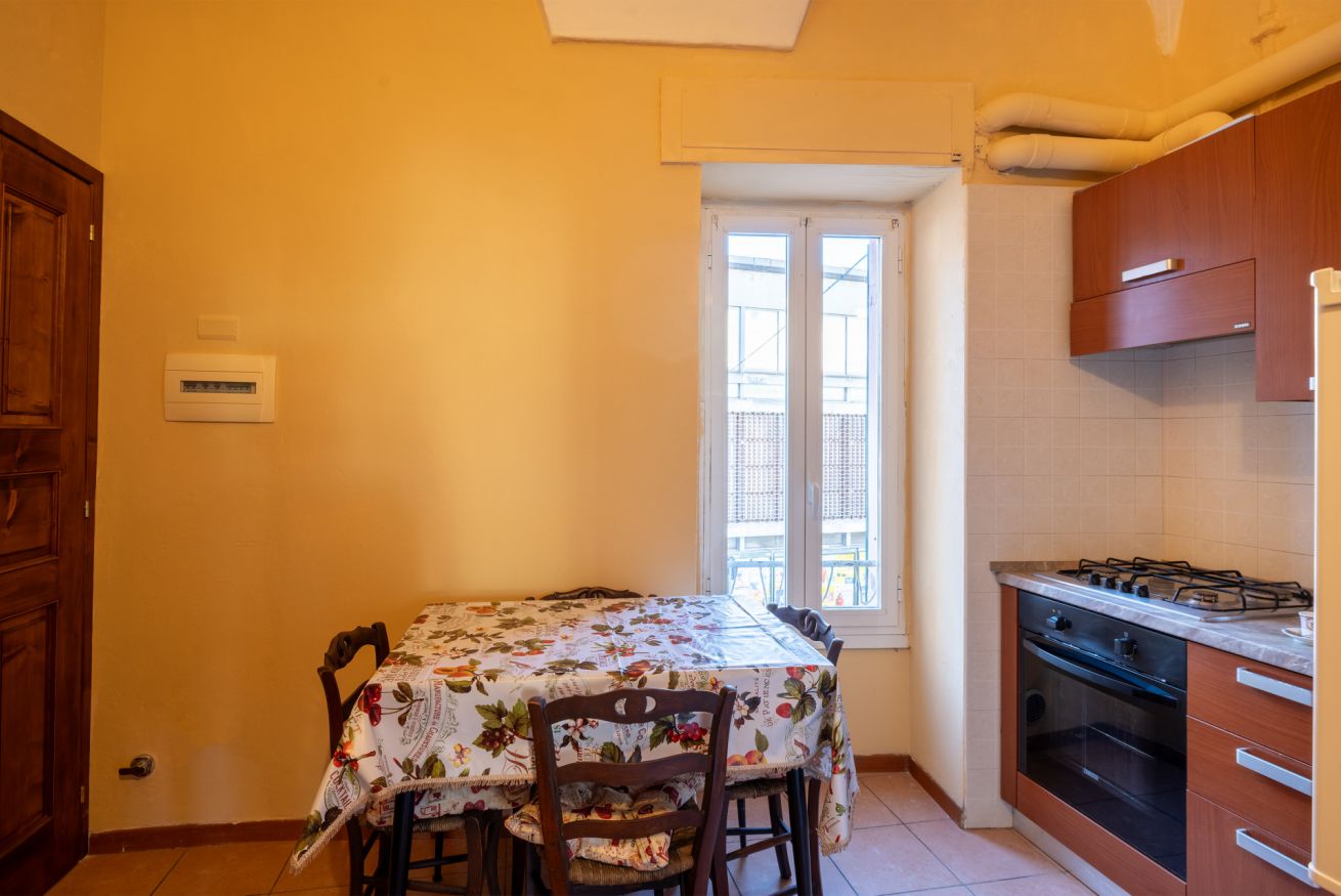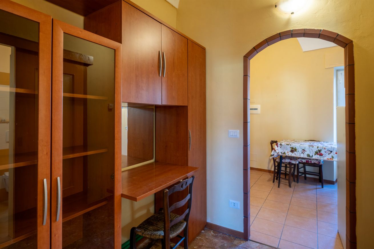 La cucina abitabile è completa e dispone di una zona pranzo con un comodo tavolo, perfetta per condividere pasti insieme. Un disimpegno è stato sapientemente sfruttato per creare una zona lavoro con scrivania, ideale per chi ha bisogno di un angolo studio.