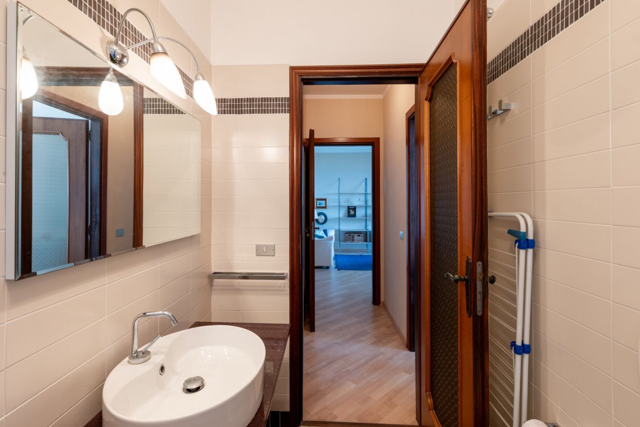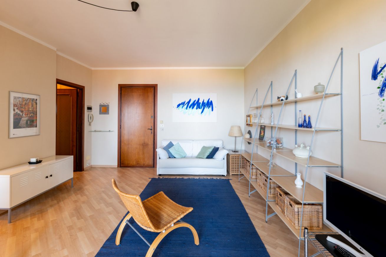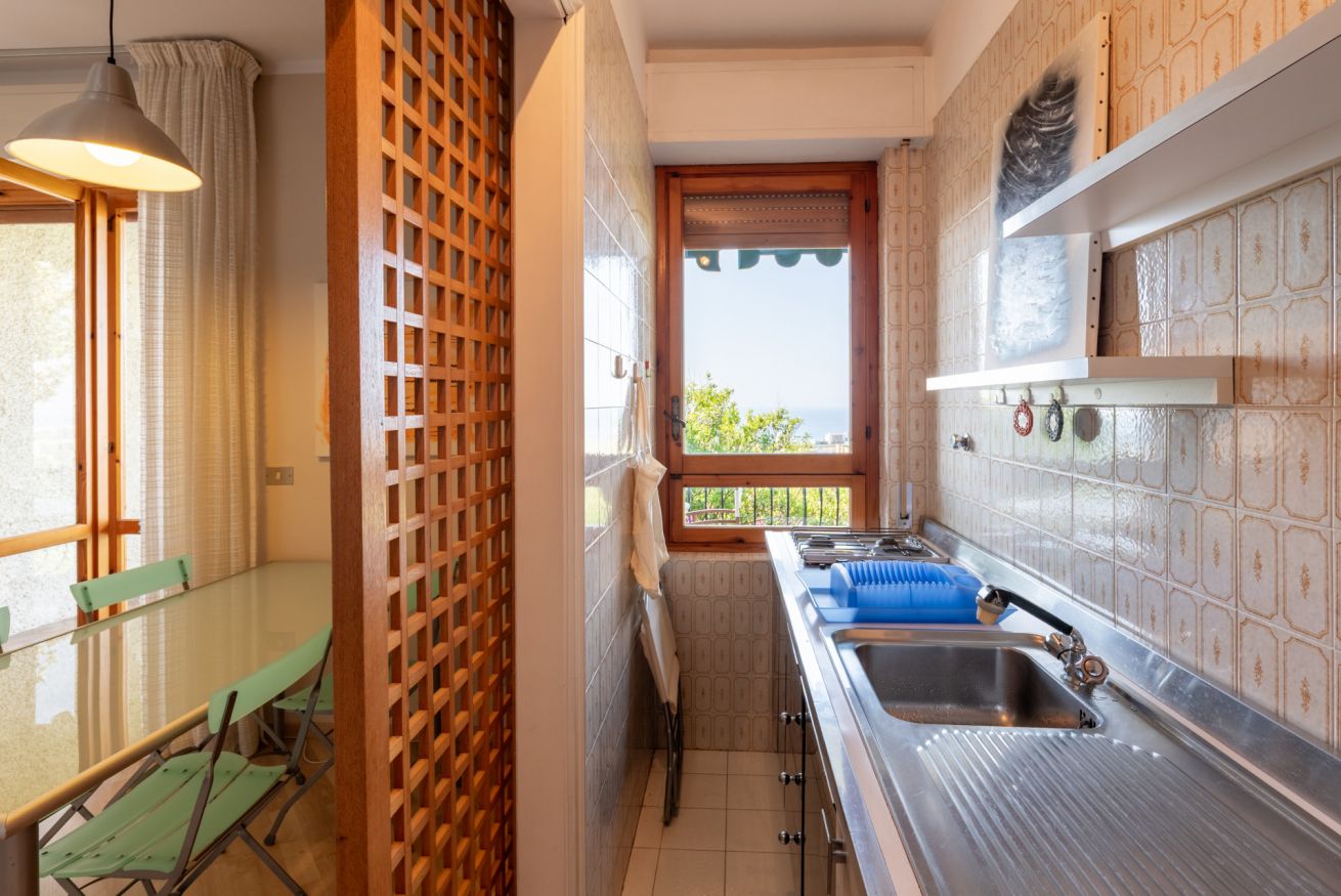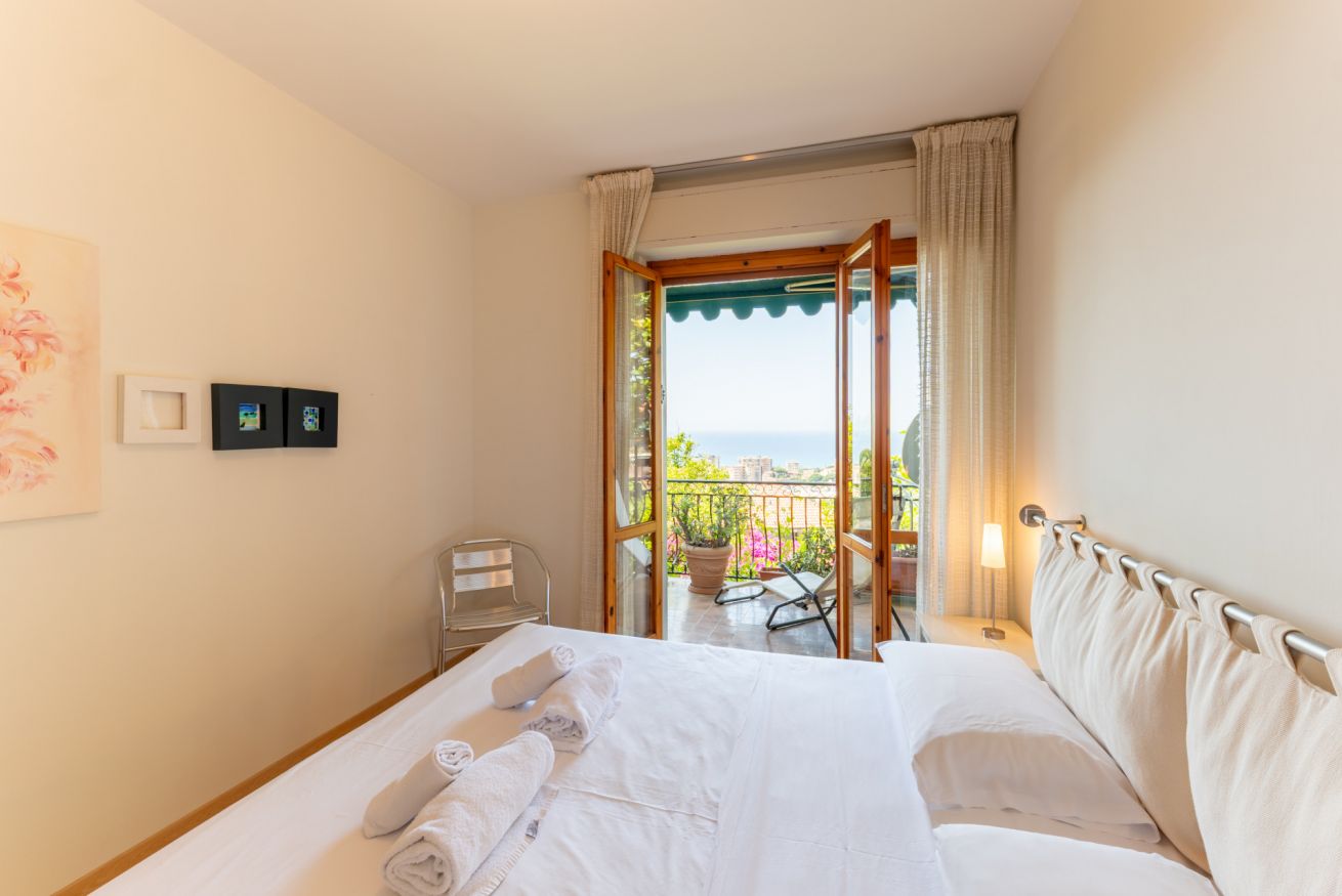 L’alloggio si distingue per il suo ampio terrazzo panoramico, perfetto per godersi colazioni all’aria aperta, pranzi in famiglia o semplicemente momenti di relax ammirando il paesaggio marino. Il terrazzo è accessibile sia dalla zona giorno che dalla camera da letto matrimoniale e rappresenta uno degli spazi più piacevoli dell’appartamento.