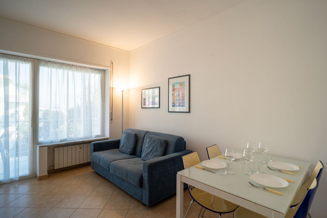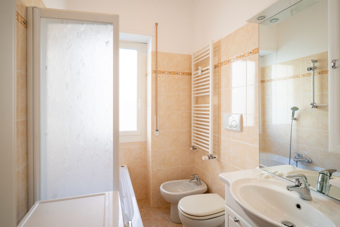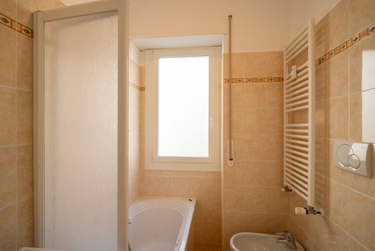 A completare l’appartamento troviamo un bagno con vasca, utilizzabile anche come doccia, e un grazioso terrazzo dotato di tavolo da pranzo, dal quale si può godere di un piacevole scorcio di mare.
