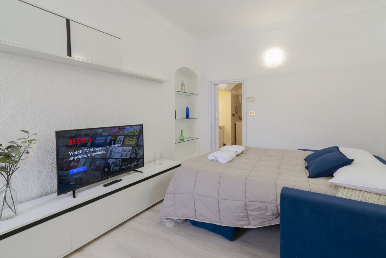 All’interno troverai un ampio e luminoso soggiorno arredato con gusto, dotato di TV a schermo piatto, zona pranzo e un comodo divano che all’occorrenza si trasforma in un pratico letto matrimoniale. La cucina è ben attrezzata con tutti gli utensili e gli accessori di base per cucinare in autonomia, perfetta per preparare colazioni, pranzi o cene con prodotti freschi acquistati in città.