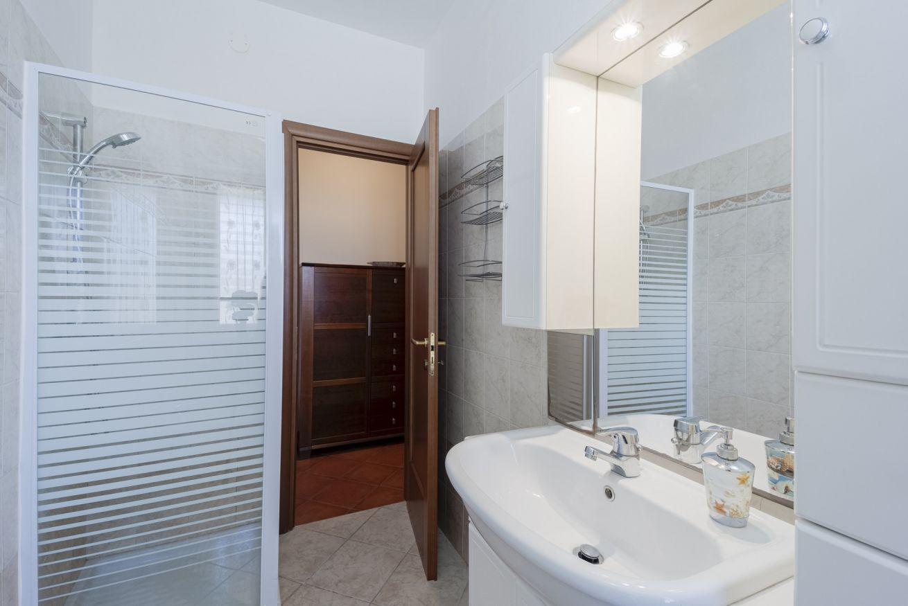 Completa la proprietà un piacevole terrazzo utilizzabile per colazioni o pranzi, da cui è possibile godere di uno scorcio sul mare.