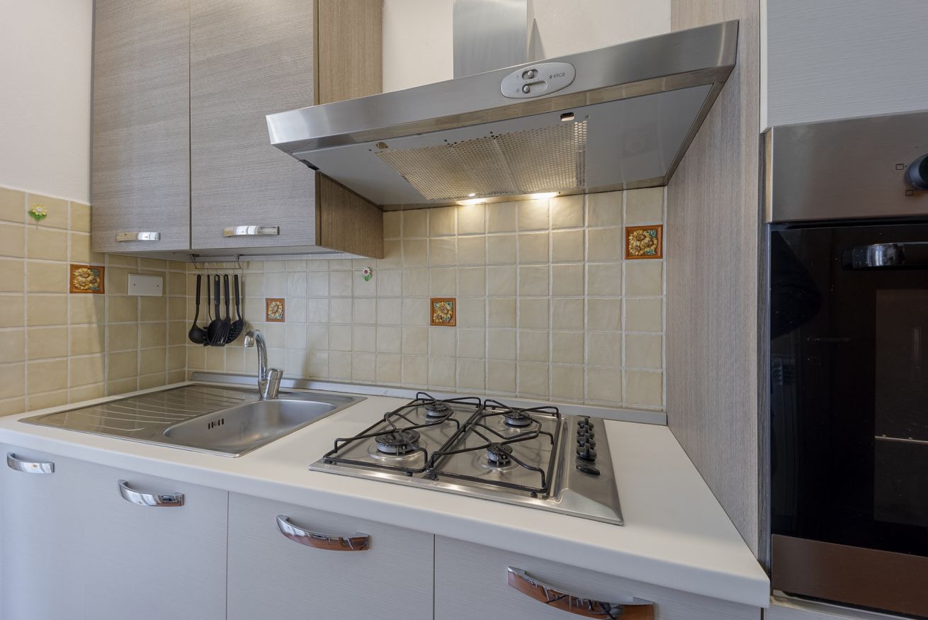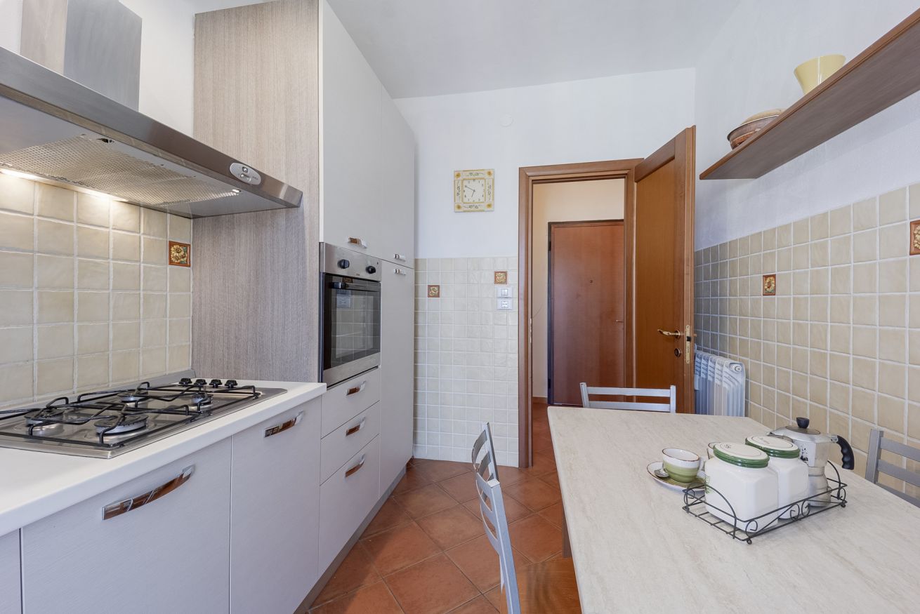 La cucina è abitabile e dotata di tavolo da pranzo, completa di tutto il necessario per cucinare comodamente. La zona notte offre una camera matrimoniale e un bagno funzionale con doccia, oltre alla comodità della lavatrice.